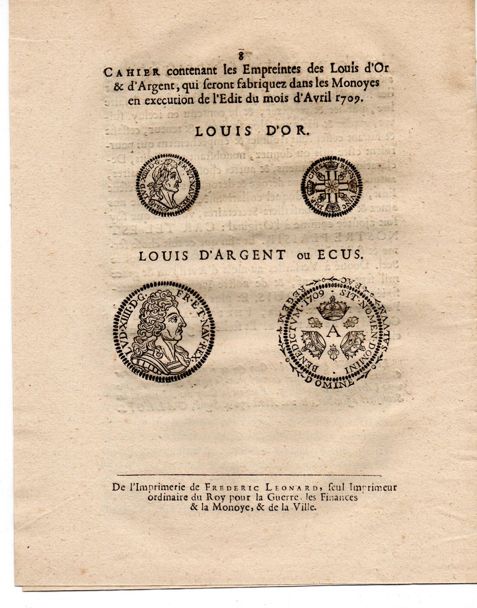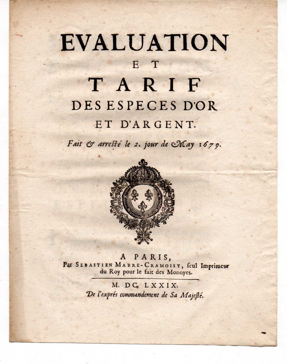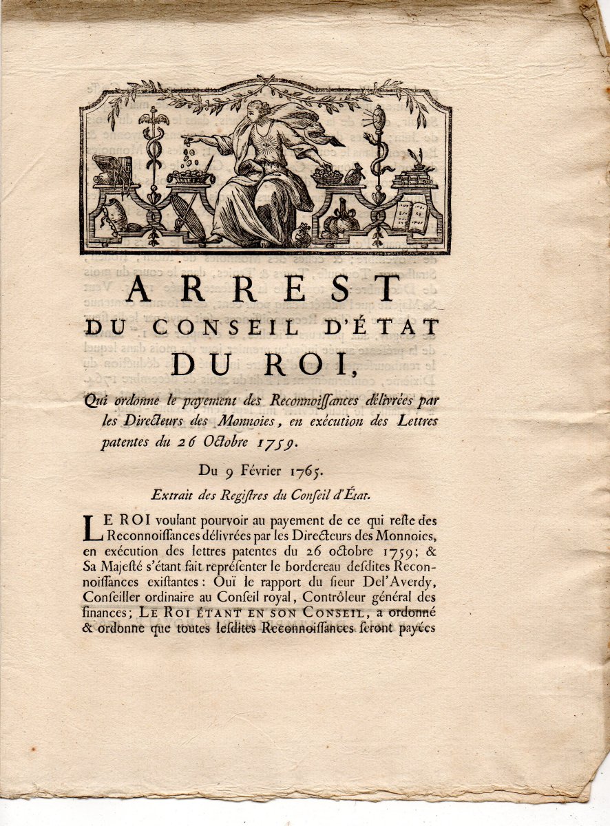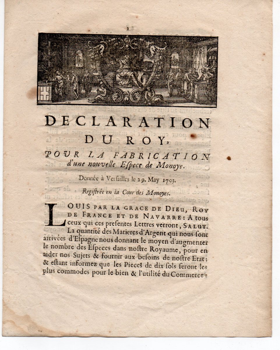 [MONNAIE] - Lettres patentes, édits, déclarations, ordonnances, arrêts du conseil d'état du roi, arrêts de la cour des aydes, arrêts de la cour des monnaies, et divers, relatifs à l'administration et à la règlementation de la monnaie (fabrication, circulation, change, tarifs) et au statut et rôle des officiers.