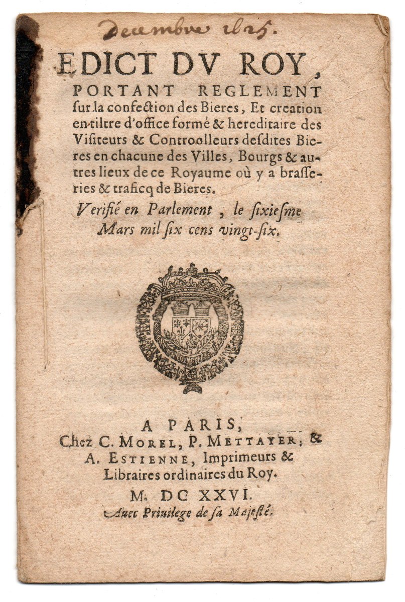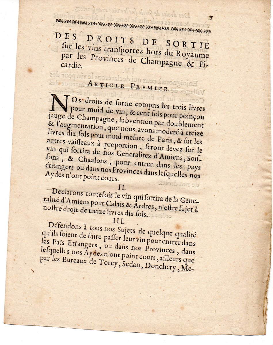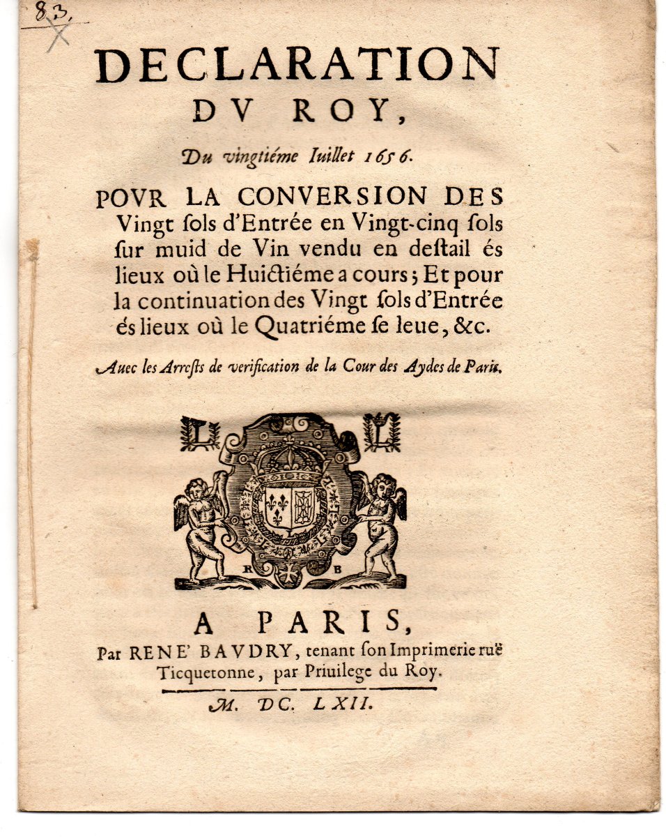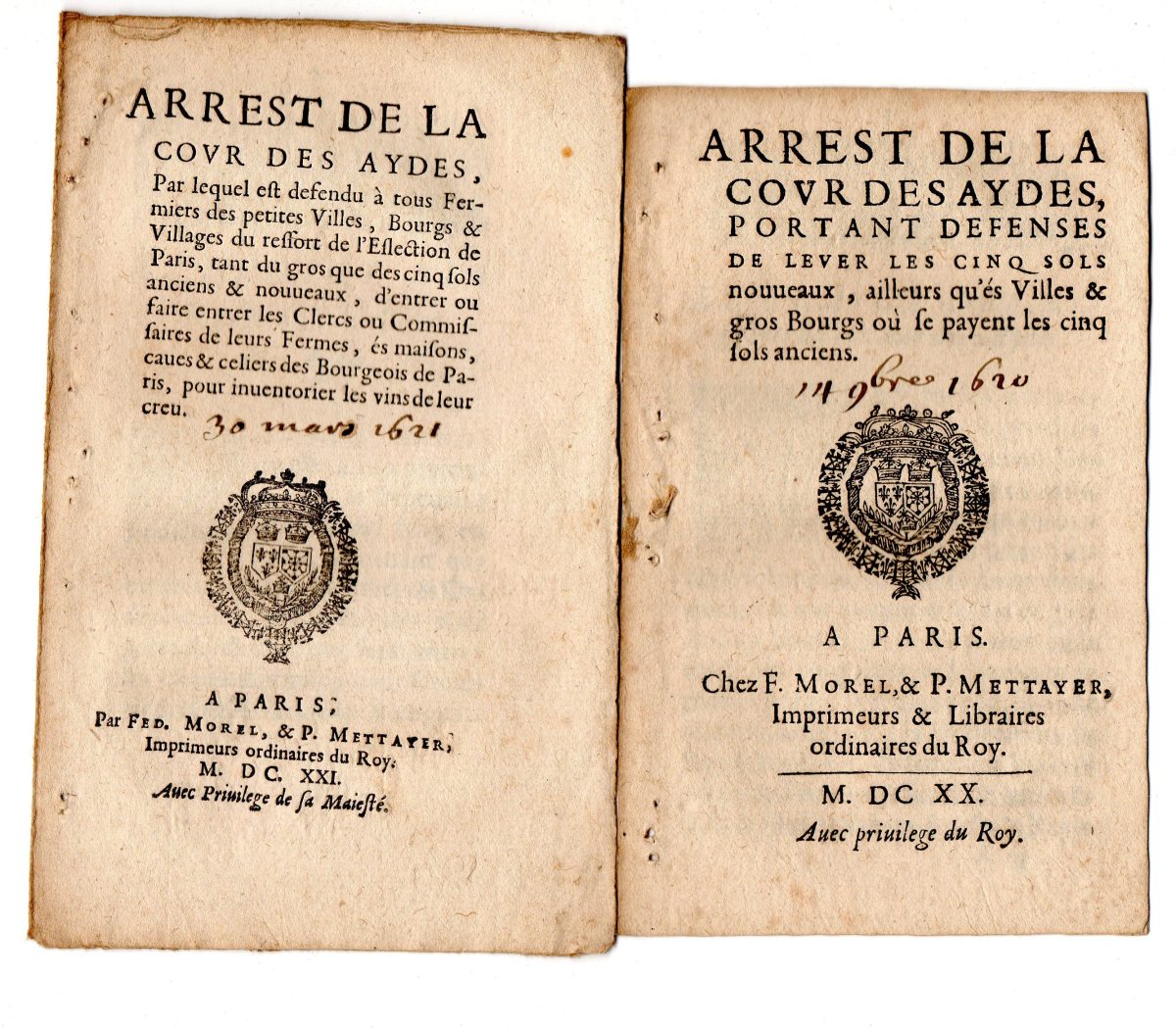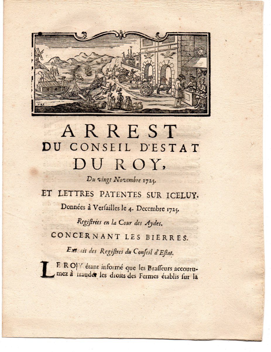 [COMMERCE - AYDES - VINS et ALCOOLS] - Lettres patentes, édits, déclarations, ordonnances, arrêts du conseil d'état du roi, arrêts de la cour des aydes et divers, relatifs aux règlements et à la jurisprudence de la perception des droits d'aides perçus sur les vins et alcools (eau-de-vie, bière, cidre, vinaigre), notamment dans la province de Normandie.
