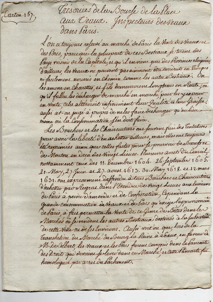 [Offices de langueyeurs - inspecteurs visiteurs des porcs - inspecteurs des veaux - vendeurs de bœufs - trésoriers de la place et marché aux veaux - inspecteurs aux boucheries - visiteur des suifs et chandelles - communautés des bouchers et des charcutiers - droit de ferme - droit d'entrées - droit du pied-fourché - etc.]