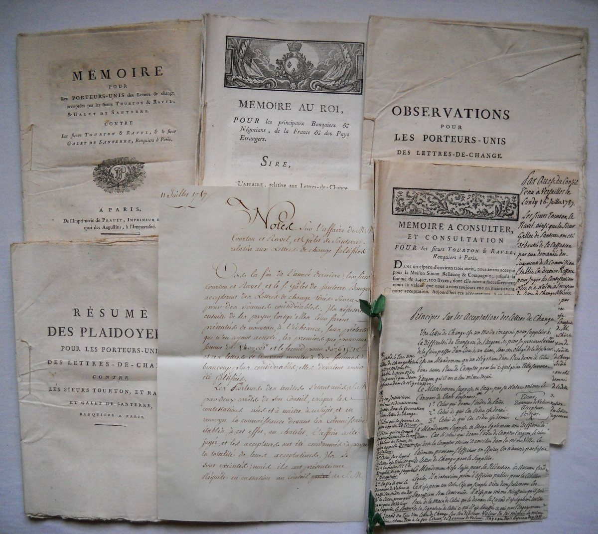[Intendants du commerce - conseils et chambres du commerce - juges consuls - courtiers et agents de change - bourse - Billets et lettres de change - billets payables aux porteurs - lettres d'état - faillites, banqueroutes - banqueroutes frauduleuses - marchandises de contrebande - fraudeurs - etc.]