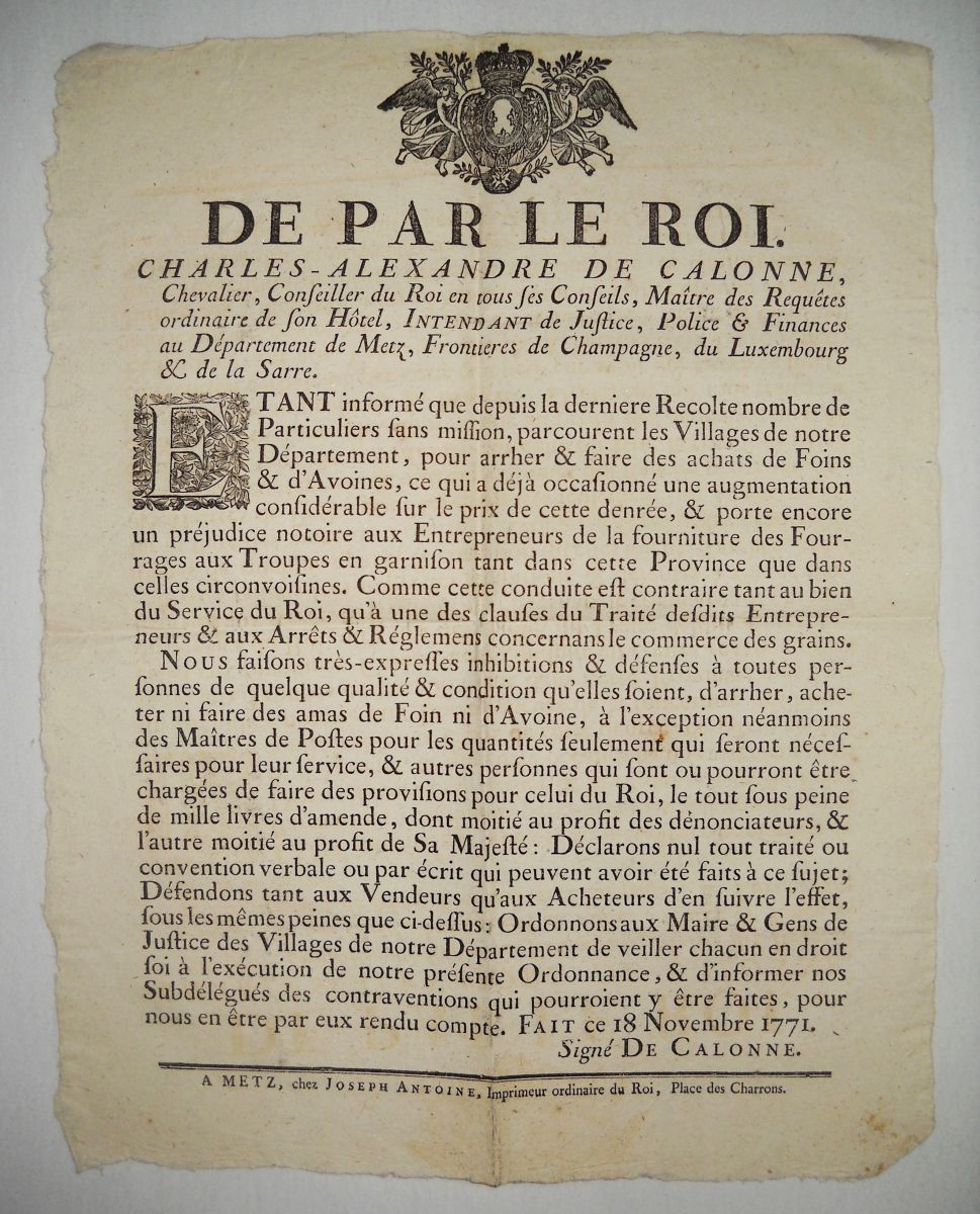 ![Lot 65 - [MILITARIA - RAVITAILLEMENT] - Lettres patentes, édits, déclarations, ordonnances, arrêts... [MILITARIA - RAVITAILLEMENT] - Lettres patentes, édits, déclarations, ordonnances, arrêts...](<150:ddoc-446944-3622fcb933c08d0d803ac86827737019-68_2.jpg, <480:ddoc-446945-60d4b2744f9410362014025d5c2f89cb-68_2.jpg, <640:ddoc-446946-41745c90b36279ecd0f4a755e6ef3ee3-68_2.jpg, <900:ddoc-446947-e17a00946dee96445041af66f24fcd1d-68_2.jpg, >900:ddoc-446943-d32ebcb3a4ba073137d4a82ae99345c2-68_2.jpg)