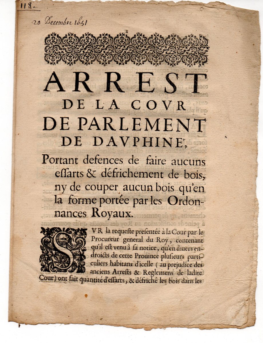 - [CHASSE - EAUX et FORÊTS] - Lettres patentes, édits, déclarations, ordonnances, arrêts du conseil d'état du roi, arrêts de la cour de parlement, et divers, relatifs à l'administration, à la règlementation et au statut des officiers des eaux et forêts (coupes de bois, chasse, pêche, loups, braconnage, etc.).