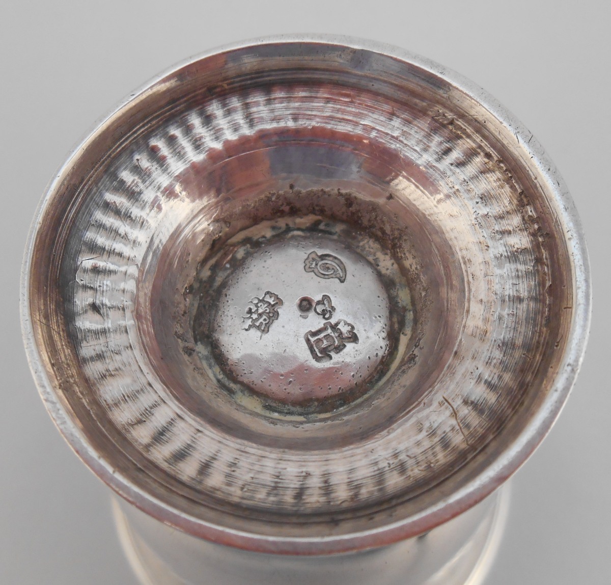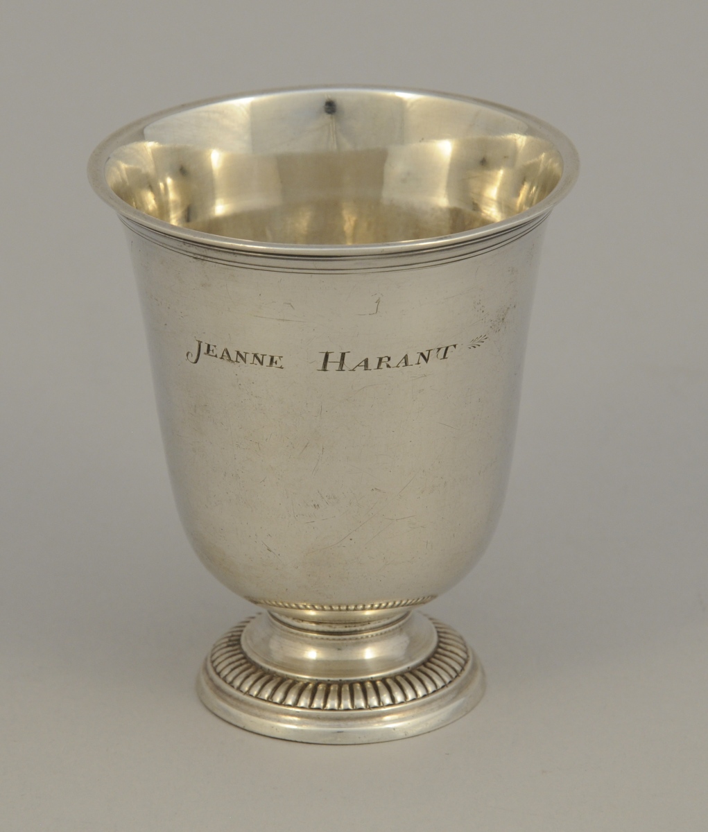 RENNES. TIMBALE dite TULIPE en argent uni reposant sur un piédouche orné d'une frise de godrons. Le col souligné de filets. Gravée en partie supérieure "Jeanne Harant".