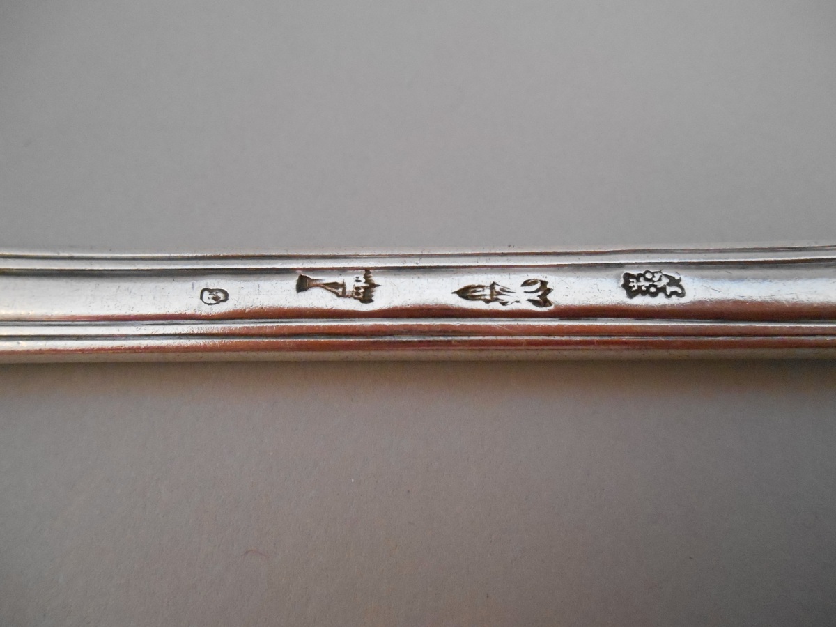Maître-orfèvre: J, A? Une fleur de lys couronnée flanquée de deux grains de remède en partie supérieure.