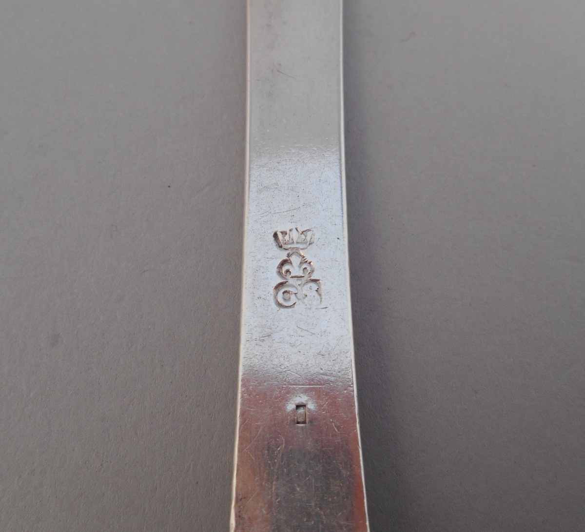 2 CUILLÈRES DE TABLE en argent uni. L'attache du cuilleron dite "queue-de-rat". La spatule trilobée. La première porte un poinçon GS, une fleur de lys sous une couronne. Il pourrait être celui de Christophe II Silbert, Maître-orfèvre à Aix-en-Provence au cours de la première moitié du XVIIIème. La seconde présente un poinçon LC timbré d'une couronne.
