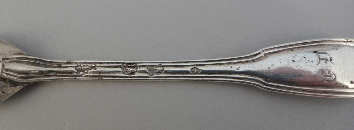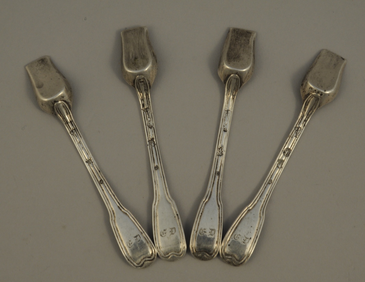 PARIS. 4 PELLES À SEL, modèle filet-contour, en argent. L'intérieur du cuilleron vermeillé.