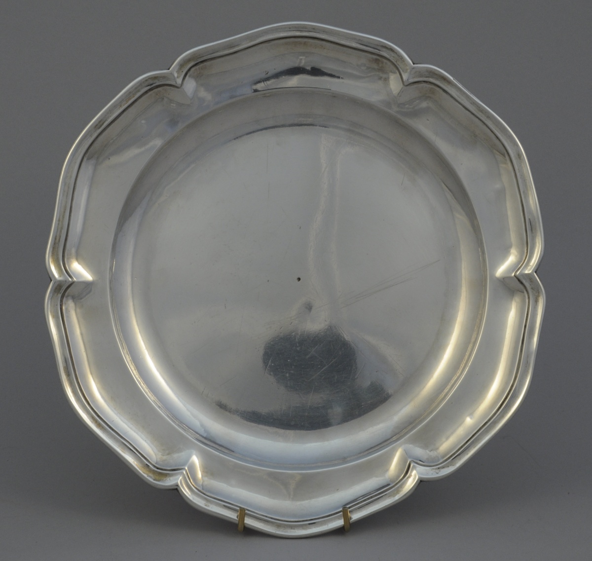MADRID. PLAT de forme ronde en argent. Bordure chantournée à batte contour.