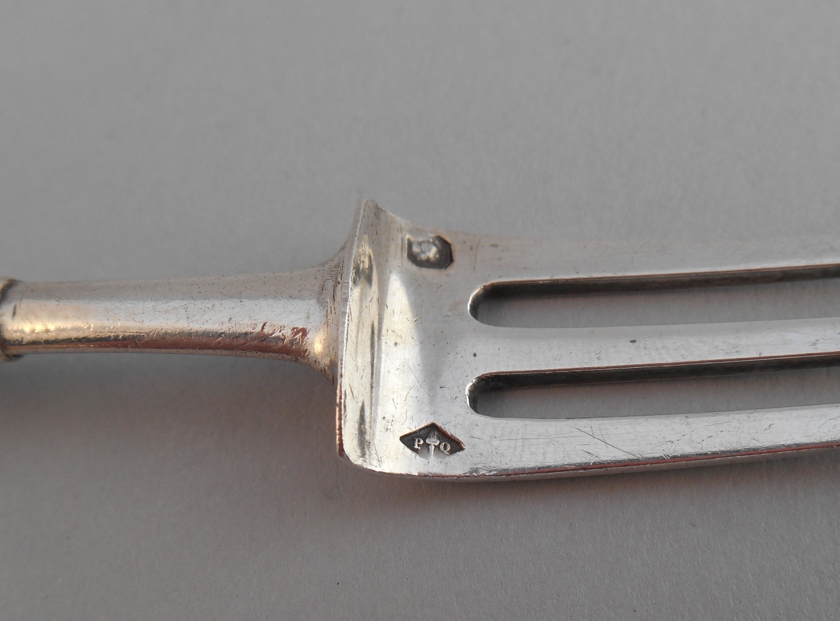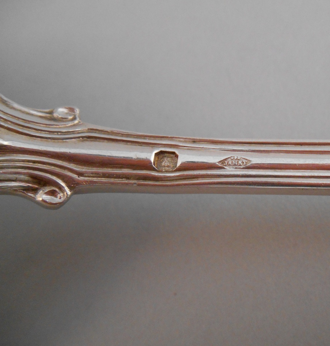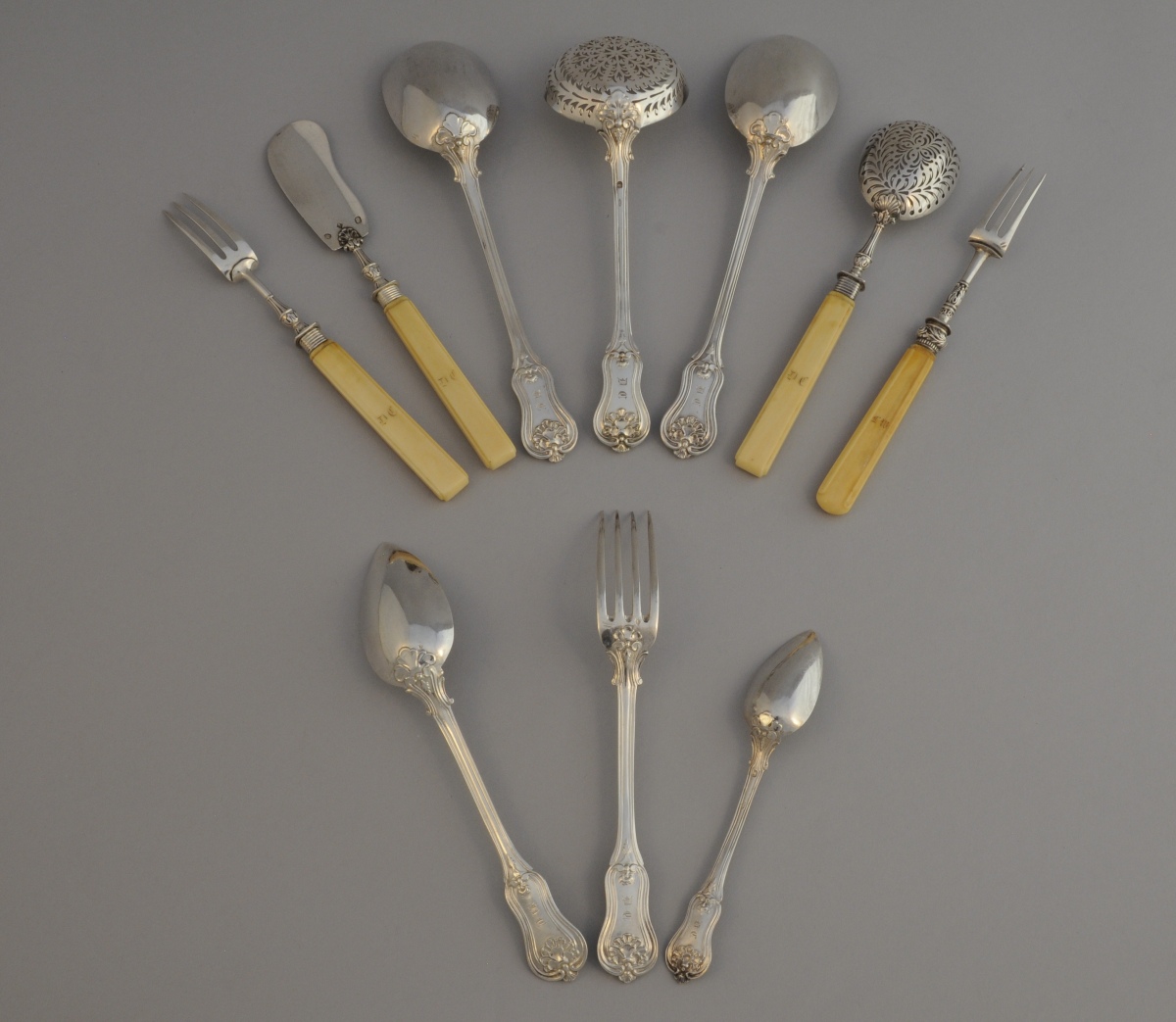 - pour les couverts de service: Pierre QUEILLE, actif entre 1834 et 1846 au 70, rue du faubourg Montmartre à Paris et Louis-Isidore ANGÉE, actif entre 1834 et 1842 au 11, place Dauphine à Paris.