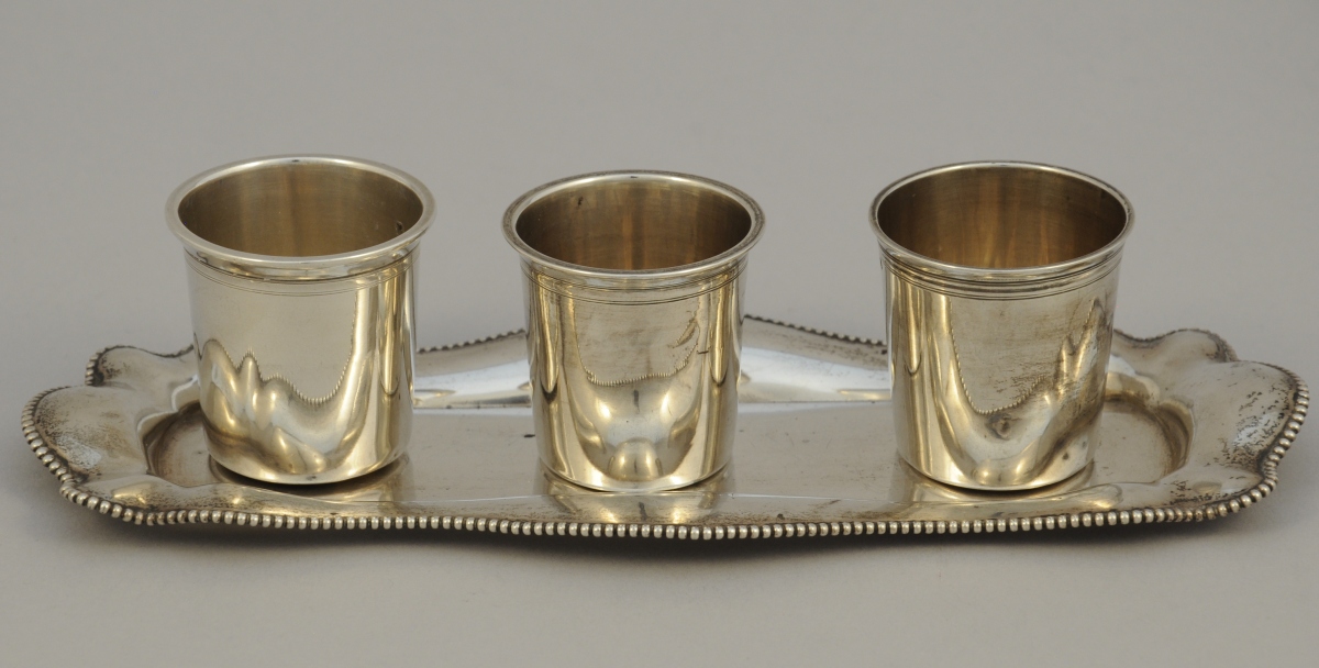 -3 GOBELETS À LIQUEUR. Le col souligné de filet. Poinçon Minerve pour deux d'entre eux et Vieillard pour le troisième. Haut. 4 cm. Poids total: 50 g.