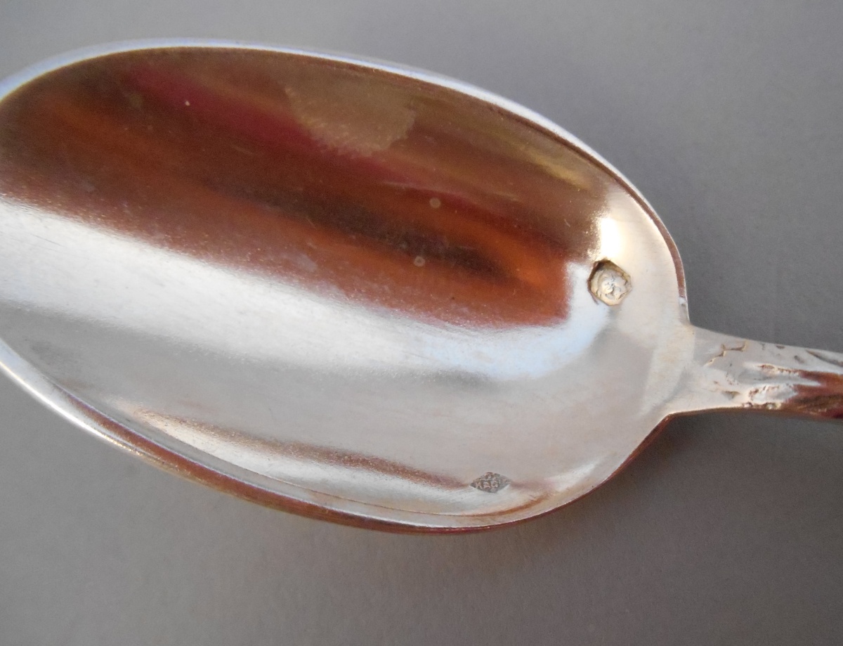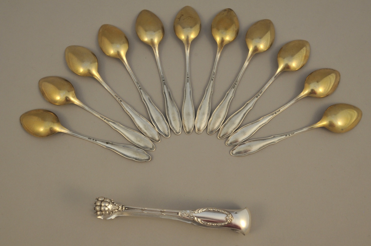 JOINT: -11 CUILLÈRES À MOKA en argent. Manche découpé à filet. Le cuilleron en vermeil.
