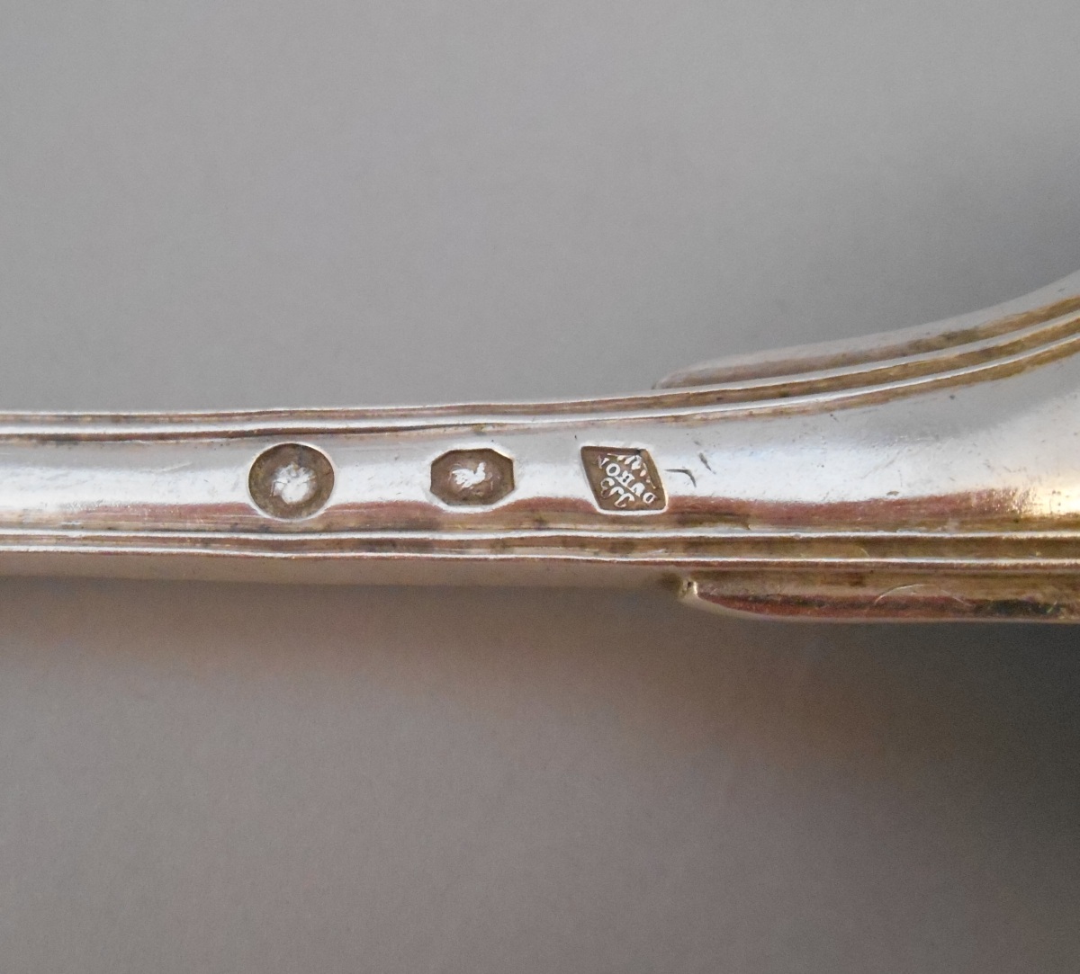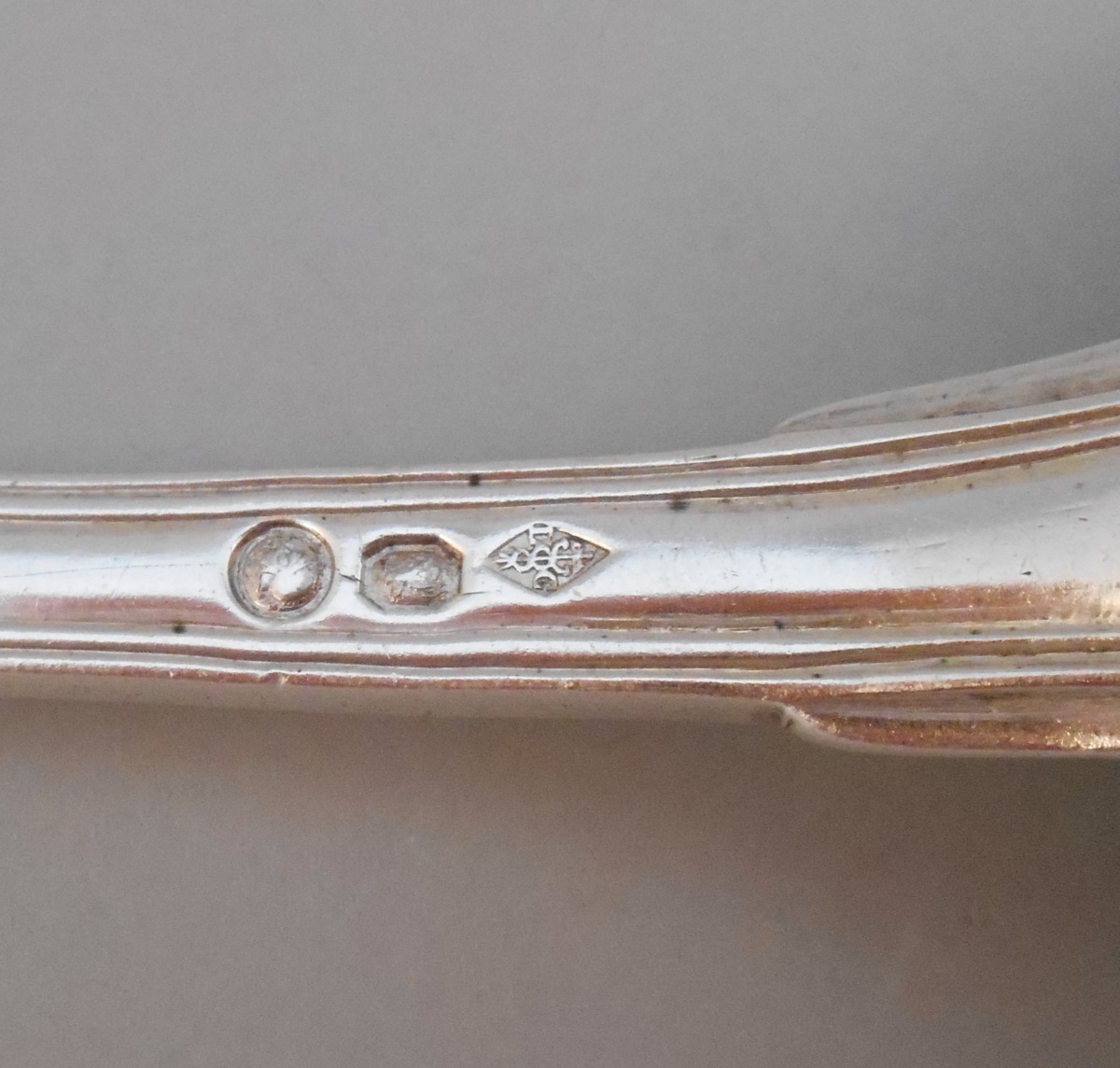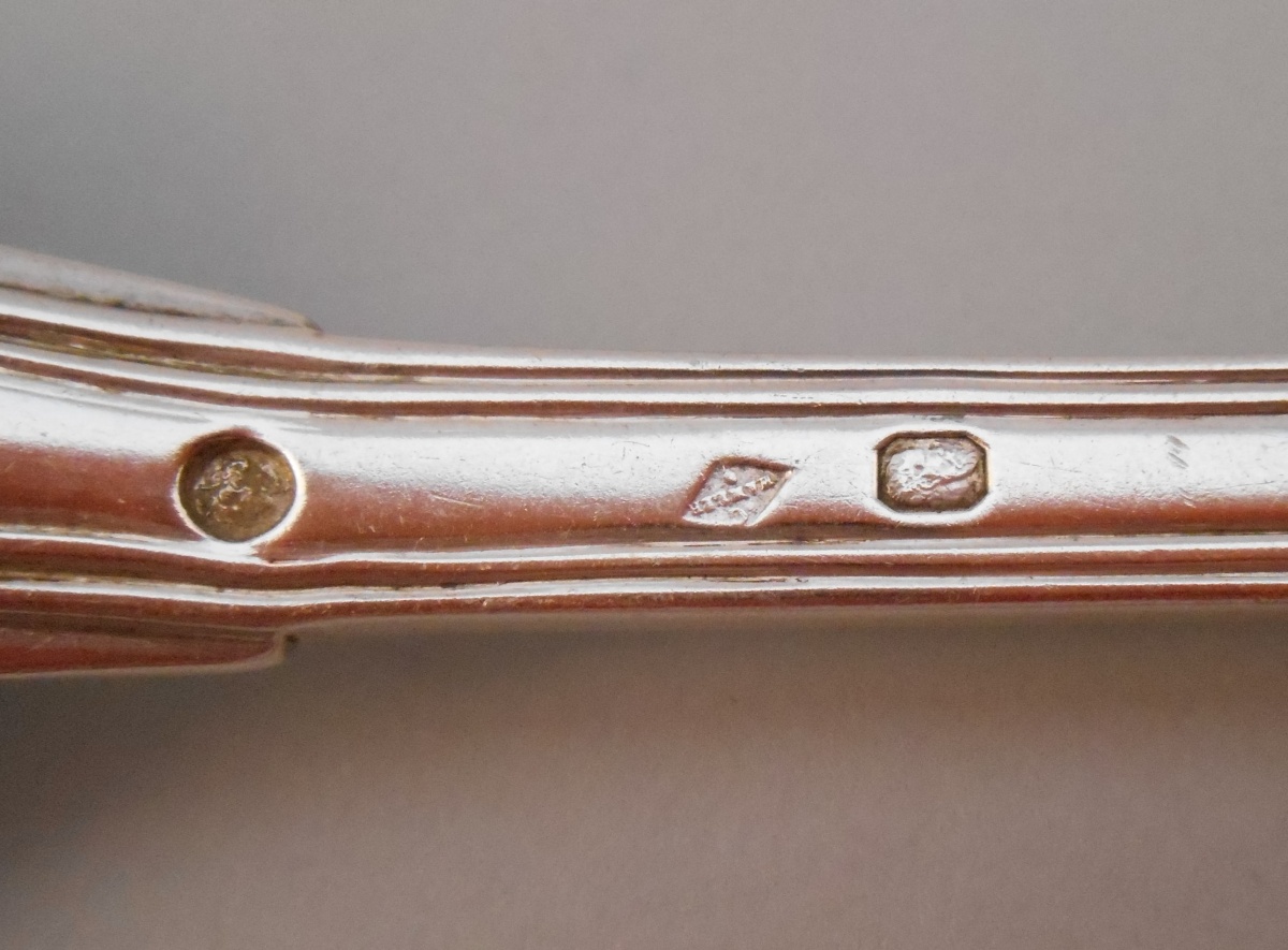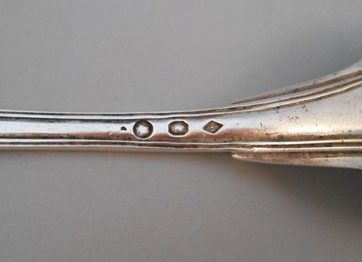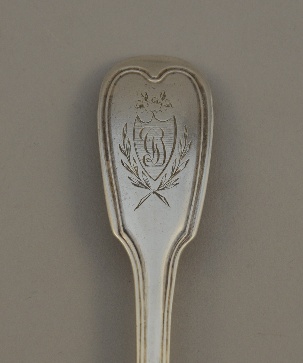 -Couvert, modèle uniplat. La spatule gravée d'un écu monogrammé "GD" timbré d'une couronne de fleurs et flanqué de branches de laurier. Poinçon 2nd Coq. Paris, 1809-1819.