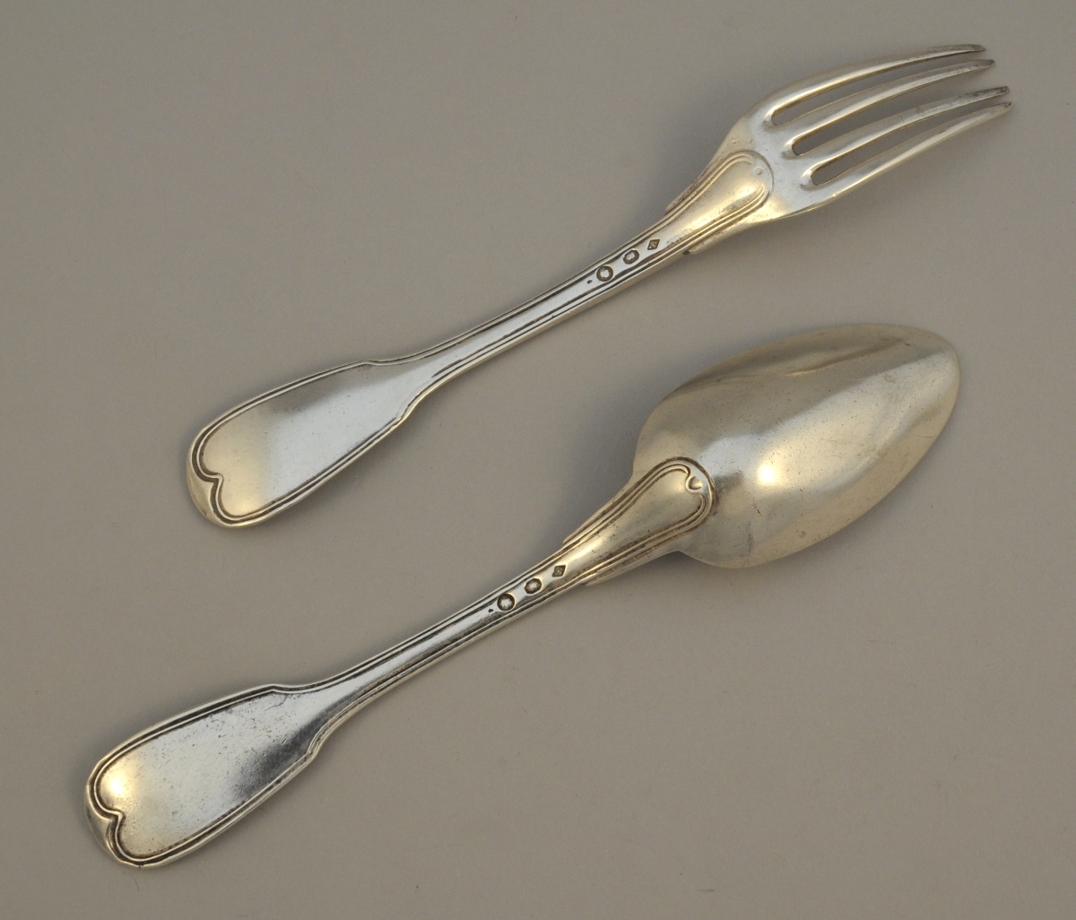 -Suite de 3 couverts de table, modèle filet-contour. Poinçon 2nd Coq. Paris, 1809-1819.