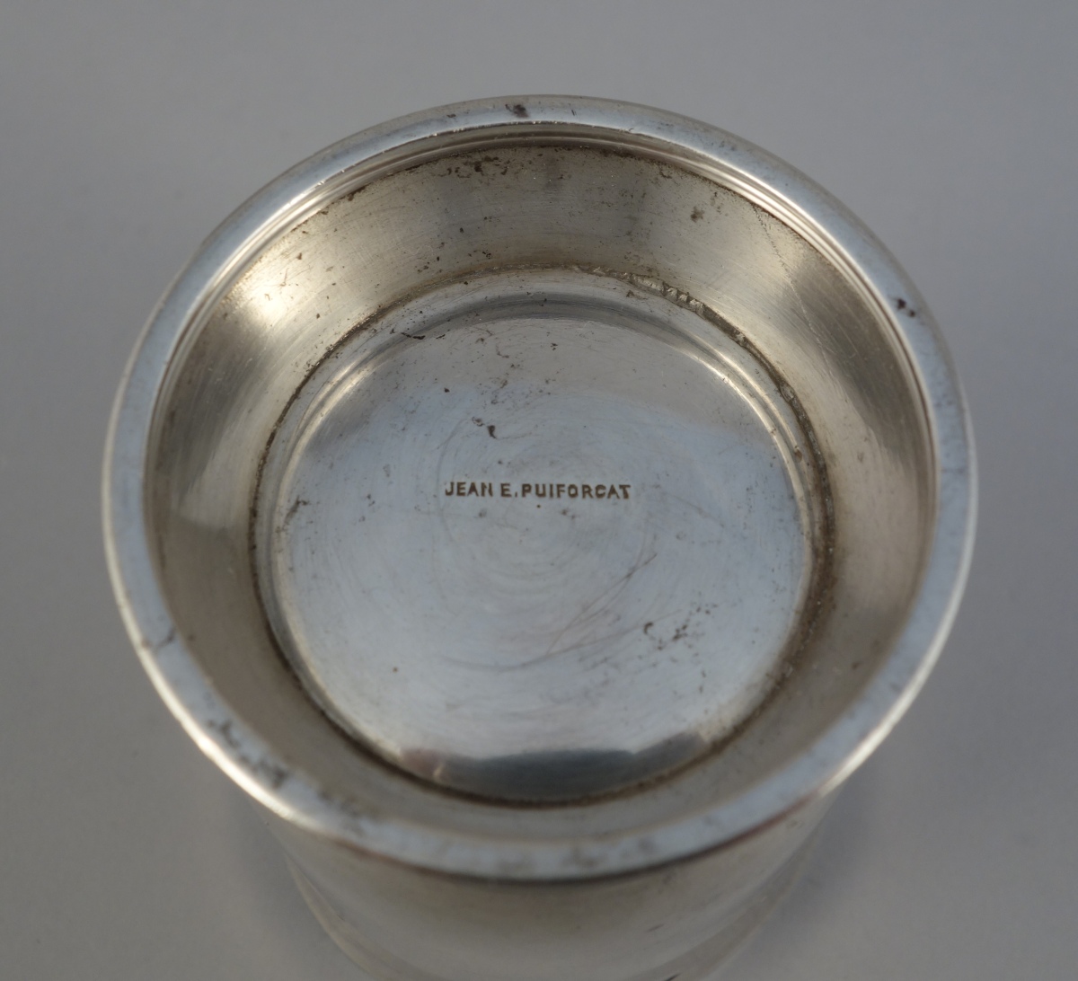 PUIFORCAT. TIMBALE en argent sur pédouche rainuré. Monogrammée "YG".