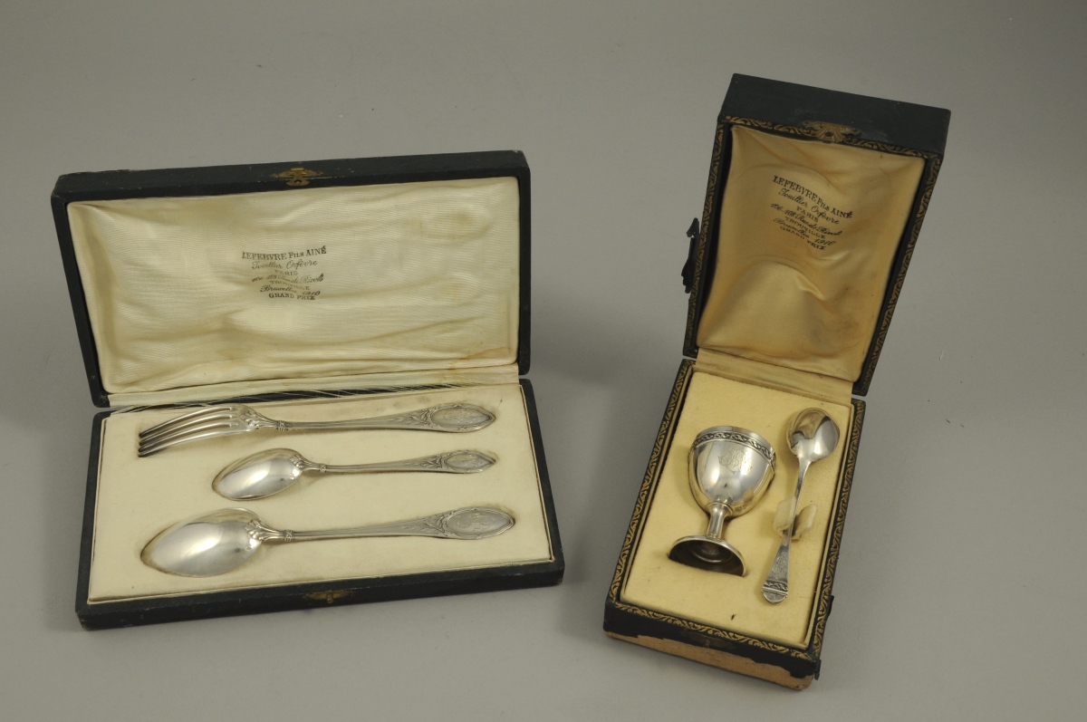 NÉCESSAIRE D'ENFANT en argent à décor de guirlandes de laurier et monogramme: