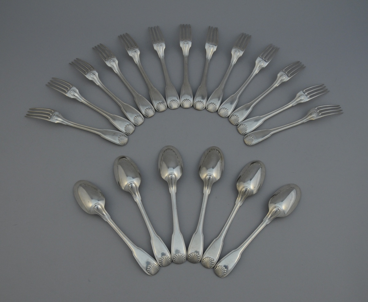 6 COUVERTS et 6 FOURCHETTES en argent. Modèle filet coquille.