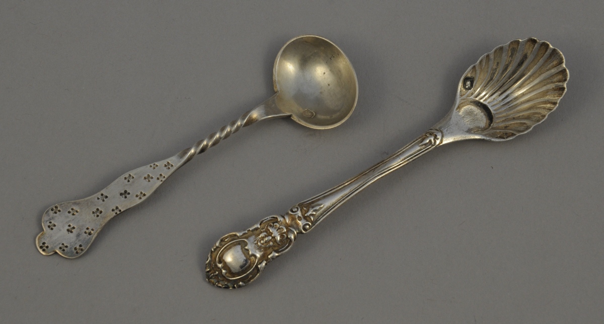 JOINT: PELLE À SEL en argent de style Louis XV. Monogrammé "RW". Poinçon Minerve. Poids: 8 g.
