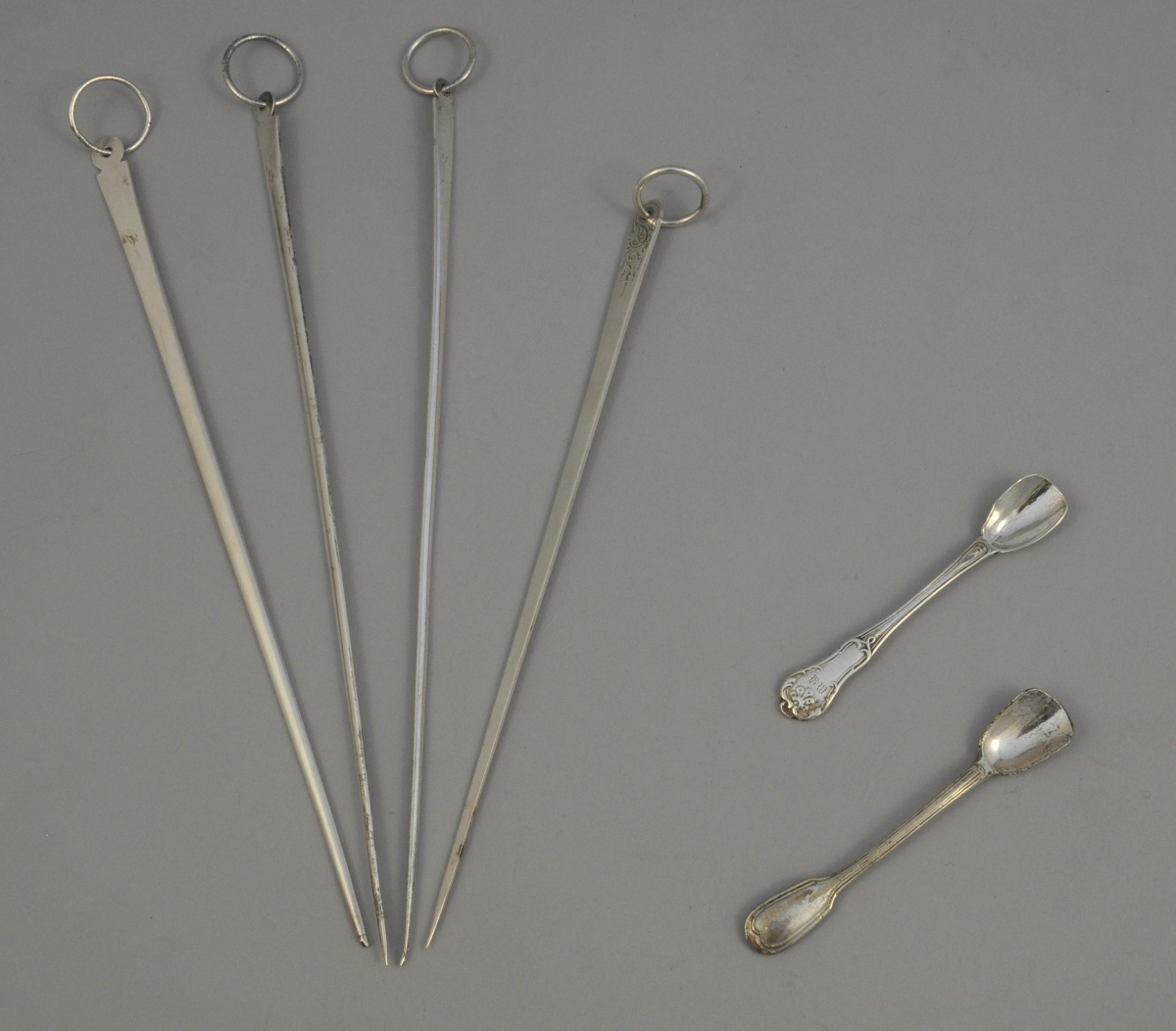SUITE DE 3 PIQUES À BROCHETTES en argent uni. Anneau mobile. Poinçon Minerve. Poids: 50 g.