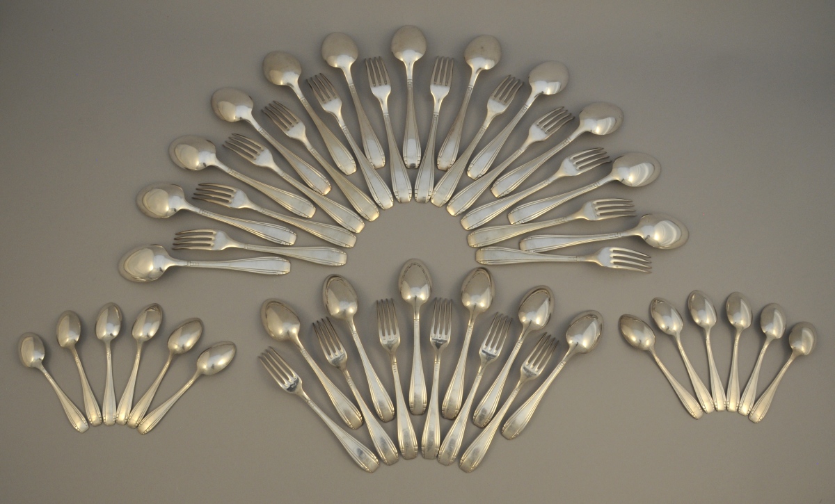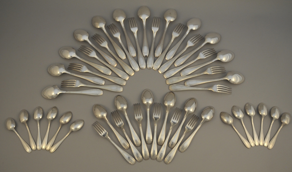 MÉNAGÈRE de 48 pièces en métal argenté comprenant 12 couverts de table, 6 couverts à entremets et 12 cuillères à café.