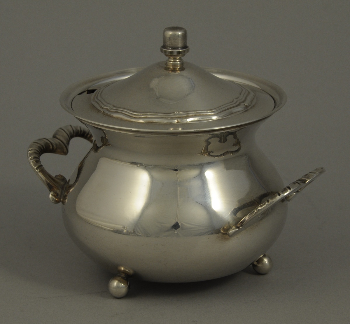 JOINT: CONFITURIER en métal argenté. Haut. 12 cm.