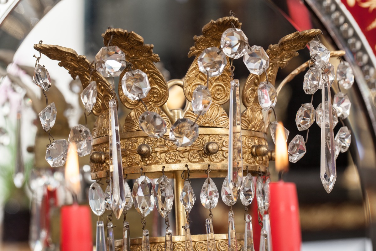 PAIRE de GIRANDOLES en demi-lustre corbeille en bronze doré à...