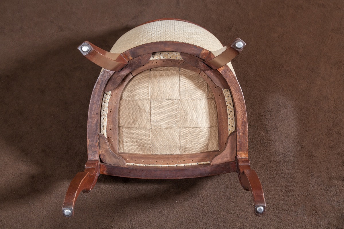 Suite de DOUZE CHAISES GONDOLES à châssis en acajou et...
