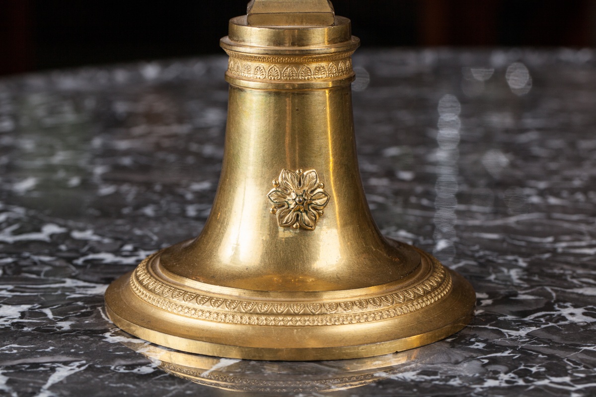 PAIRE de CANDÉLABRES en bronze doré à trois lumières à...