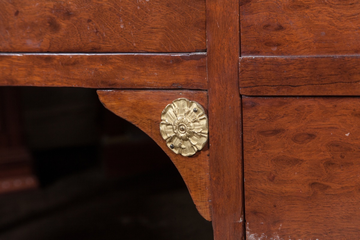 Important BUREAU PLAT en placage d'acajou moucheté ouvrant à cinq...