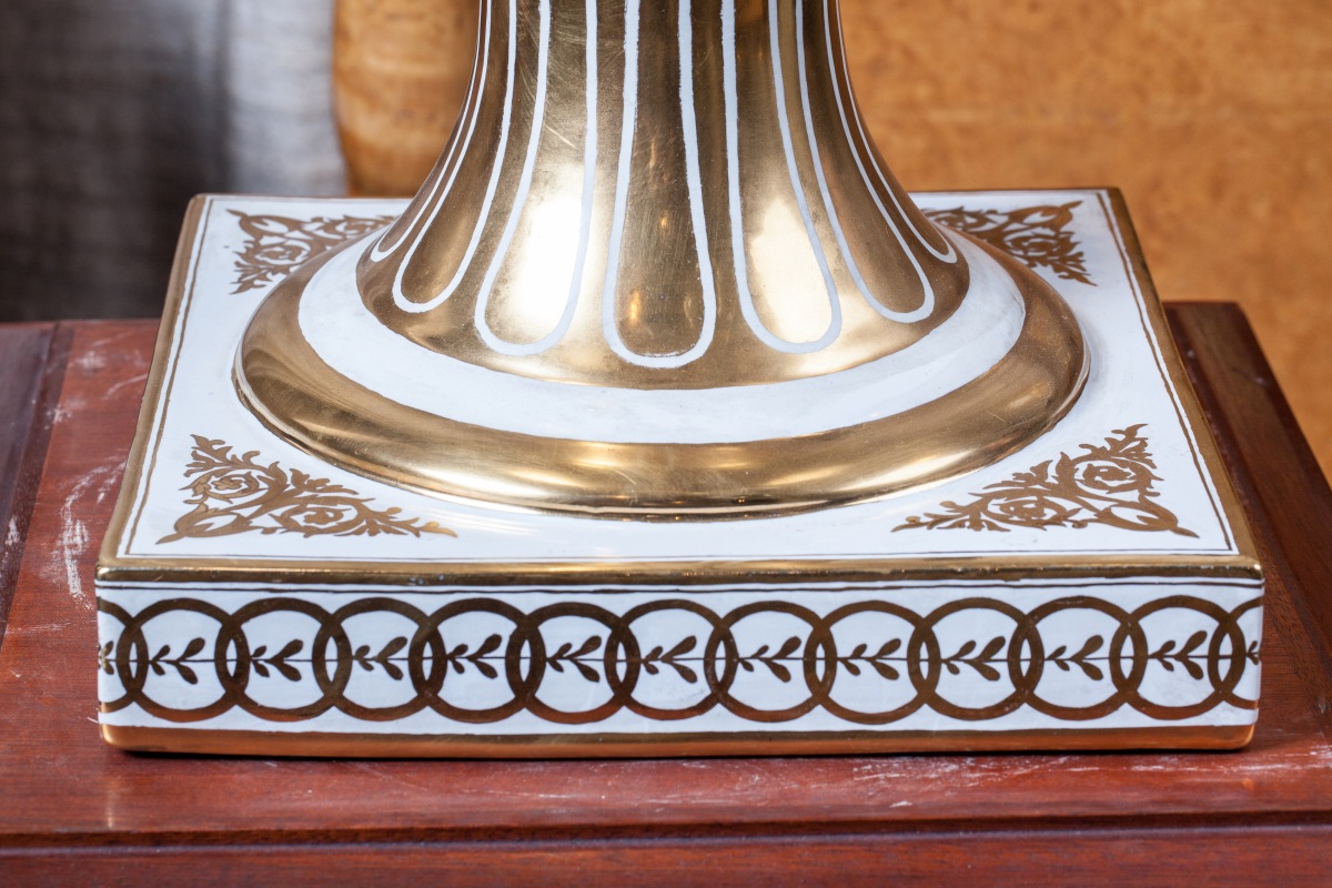 PAIRE de grands VASES MÉDICIS en porcelaine polychrome et doré...