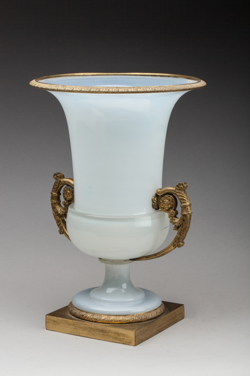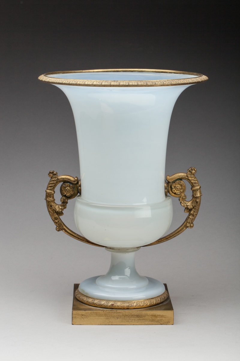 VASE MÉDICIS en opaline savonneuse. Monture en bronze ciselé et...