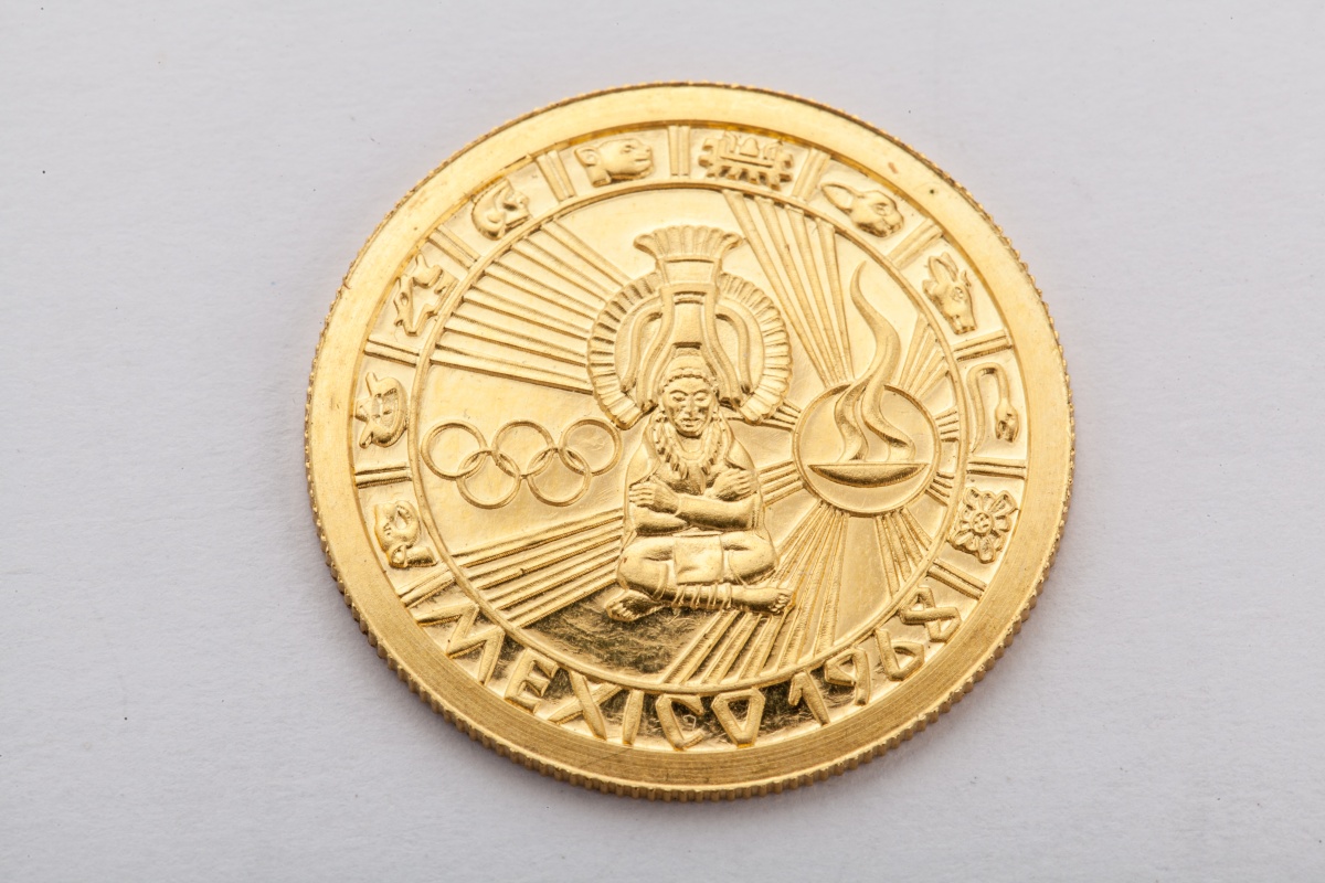 JEUX OLYMPIQUES. Médaille en or commémorative des jeux de Mexico...