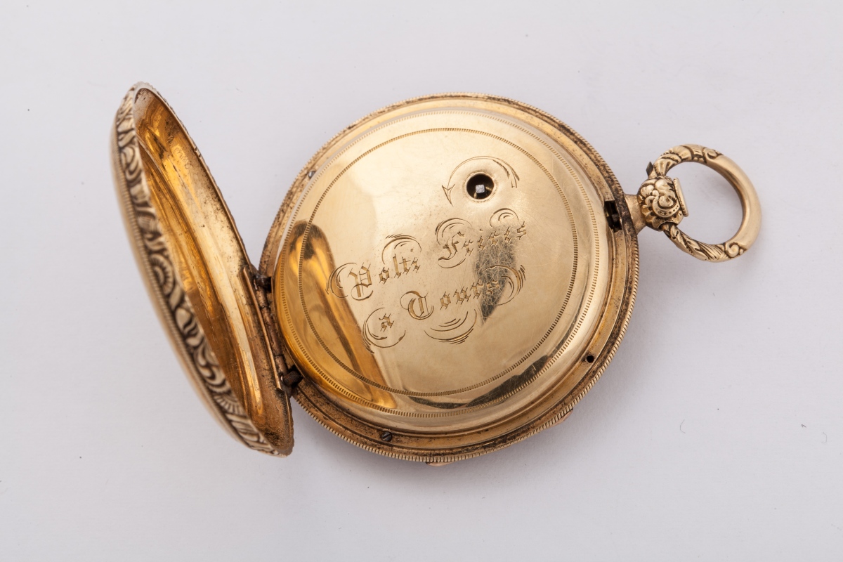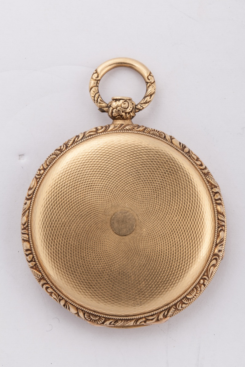 MONTRE A COQ PLATE, en or, le cadran en acier guilloché aux heures en chiffres romains et gradué pour les minutes. Le boitier en or guilloché signé Polti Frère à Tours et numéroté 31399. Le mécanisme signé Polti Fres à Tours et numéroté N 31399.