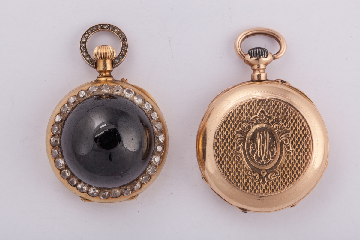 2 MONTRES de COL à remontoir au pendant, en or jaune.