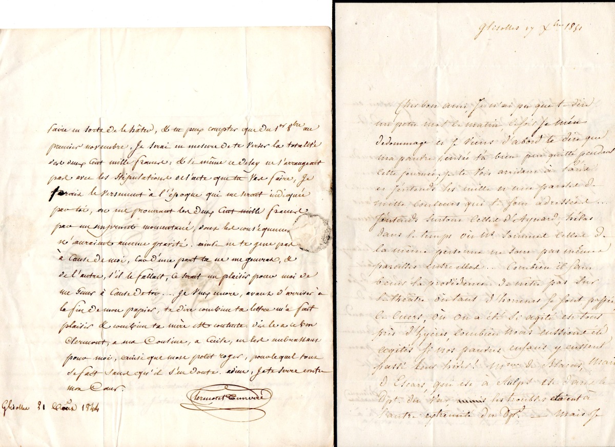 Joint pièce signée par Gaspard de CLERMONT-TONNERRE, 1er duc de Clermont-Tonnerre et maréchal de France (1688-1781) ; 8 pages manuscrites " Projet de lettre à madame la marquise de Clermont-Tonnerre " datée de 1825 ; acte canonique de 1844 ; portrait gravé d'Anet de Clermont-Gessans.