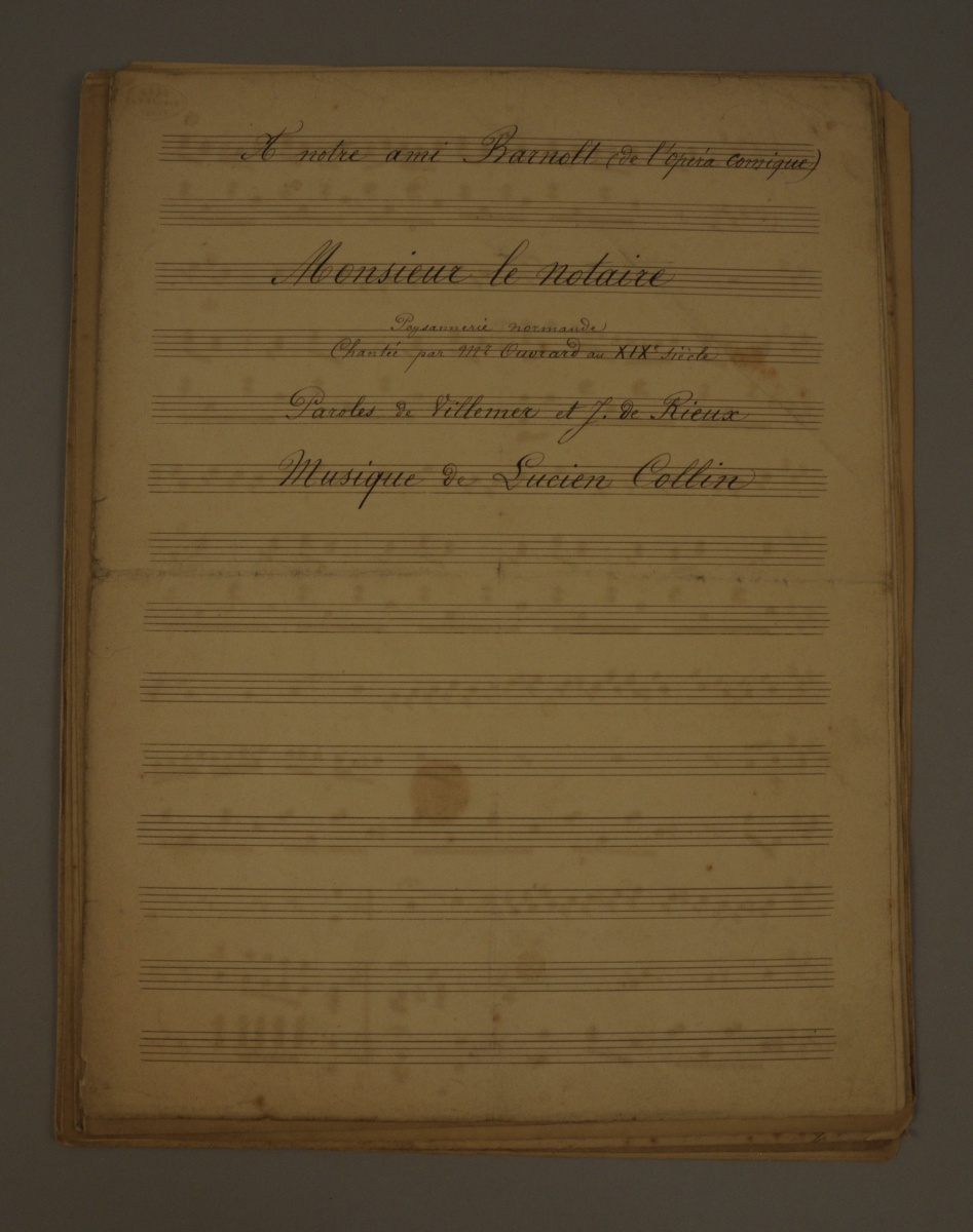 ENSEMBLE de DESSINS, PARTITIONS et CORRESPONDANCE liés à Lucien COLLIN, compositeur, chanteur et musicien: