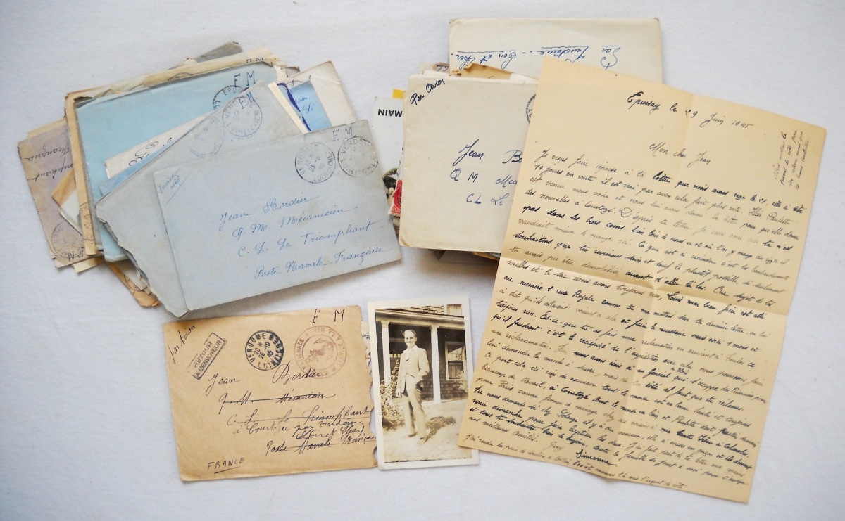 + de 50 lettres (de Courtozé la plupart et autres) adressées à Jean BORDIER durant son service militaire en tant que mécanicien dans la navale à bord du Triomphant, 1945-1946 + 1 photo