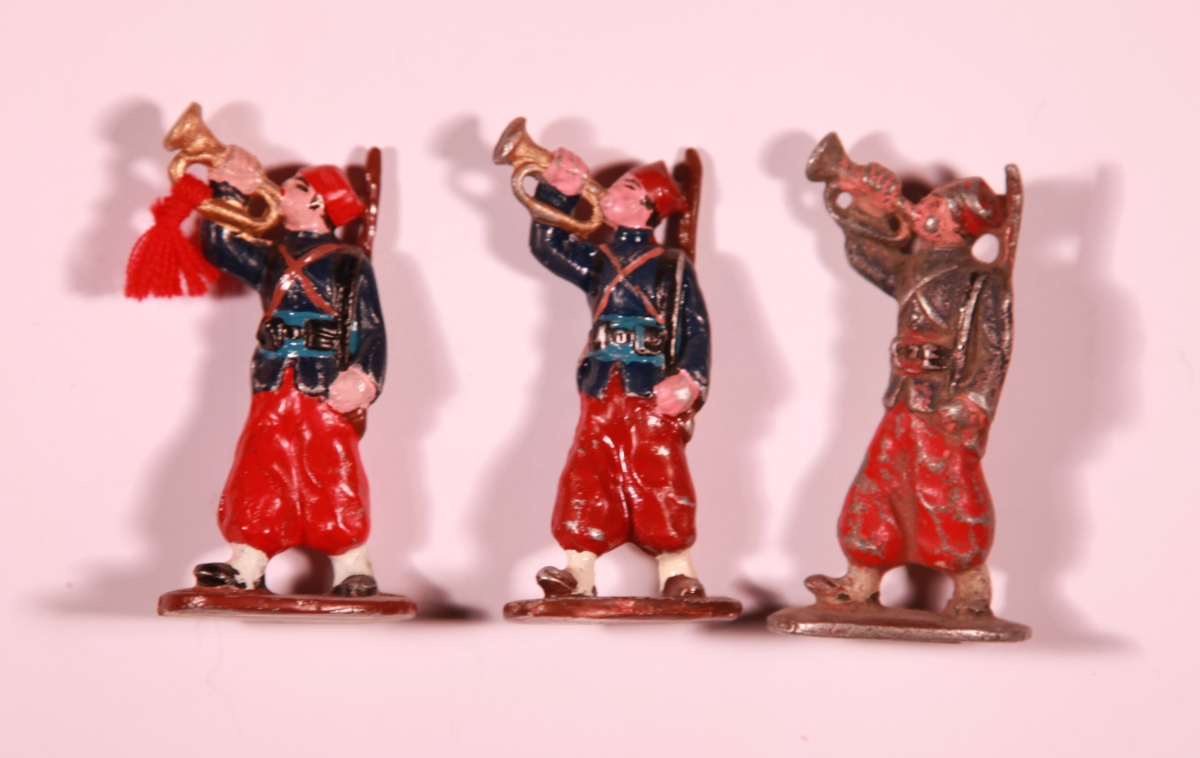 QUIRALU, France. 5 figurines: Zouaves, Clairons.