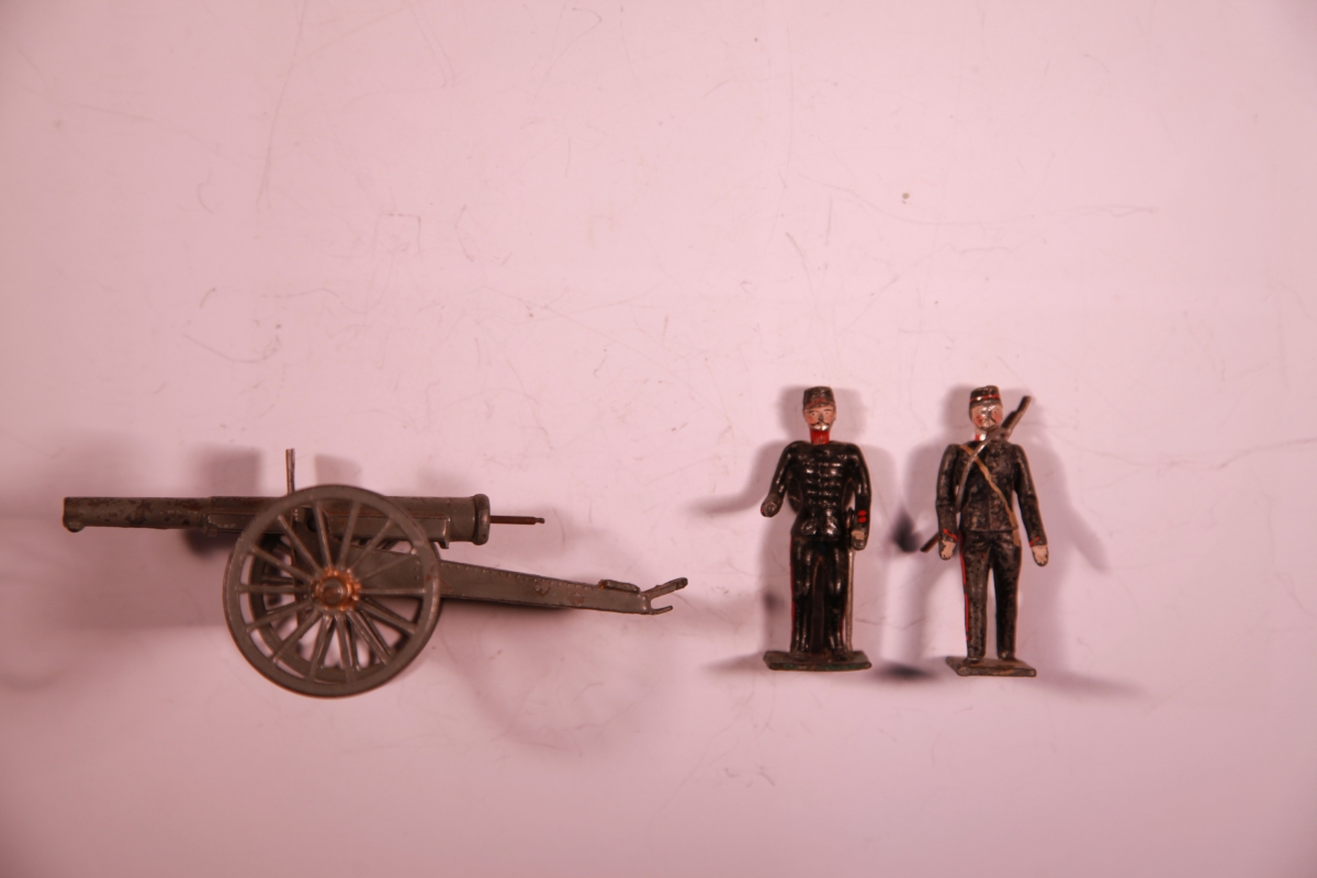 France. 3 figurines: 1 Canon de 75, 1 soldat, 1 officier.