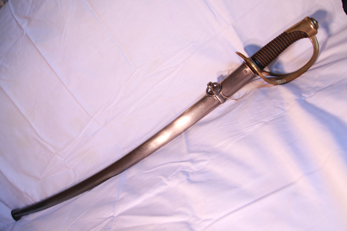 SABRE de Cavalerie légère. Manufacture de Chatellerault. Février 1875; Fourreau métal à 1 bracelet. Modèle 1822.