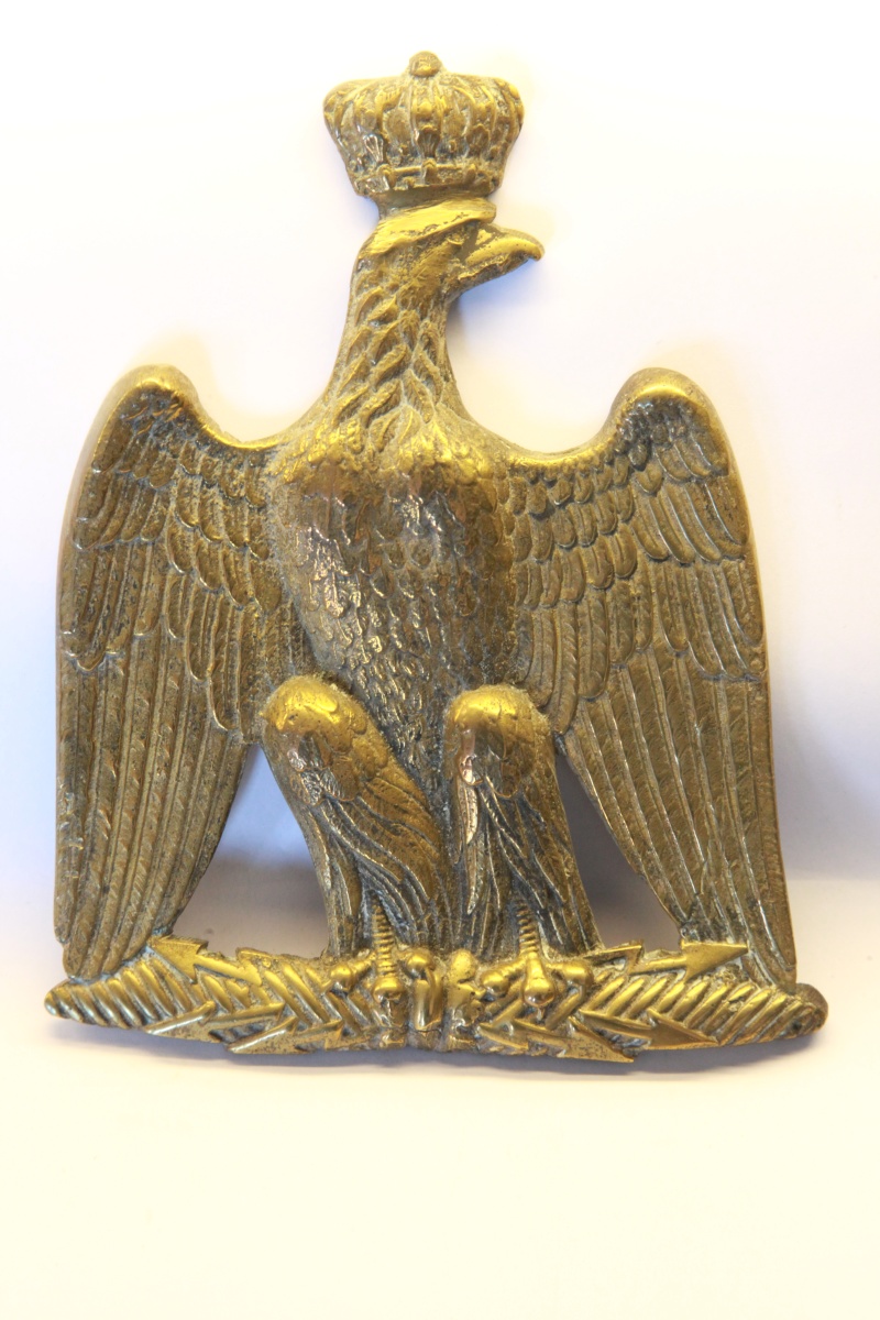 PLAQUE ORNEMENTALE. Aigle couronné. Bronze.