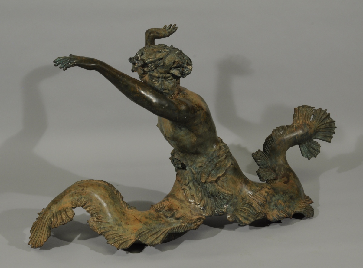 Dieu marin grec, fils de Poséidon et d'Amphitrite, messagère des flots. La partie supérieure de son corps jusqu'aux reins est celle d'un homme nageant, la partie inférieure celle d'un poisson à longue queue.