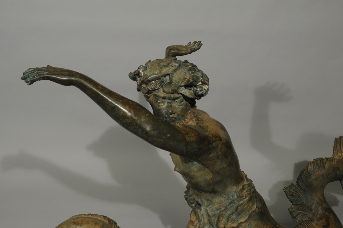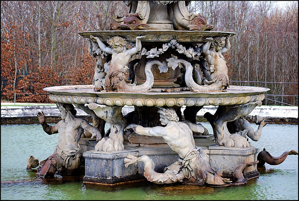 Notre triton est à rapprocher d'un modèle célèbre du parc de Louis XIV. Au parterre du Nord, la fontaine pour le bassin de la Pyramide présente en partie inférieure, une ronde de tritons.