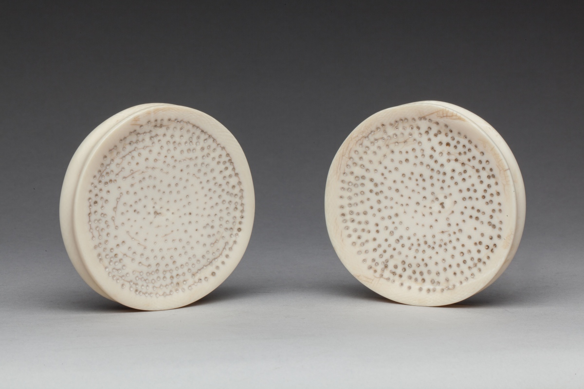 en ivoires blonds décorés de pointillés pyrogravés.