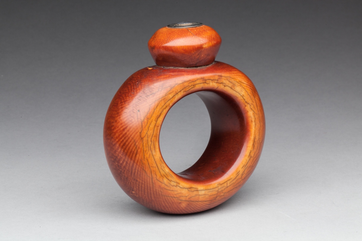 en ivoire à tenon sur lequel est fixé une pièce de monnaie.