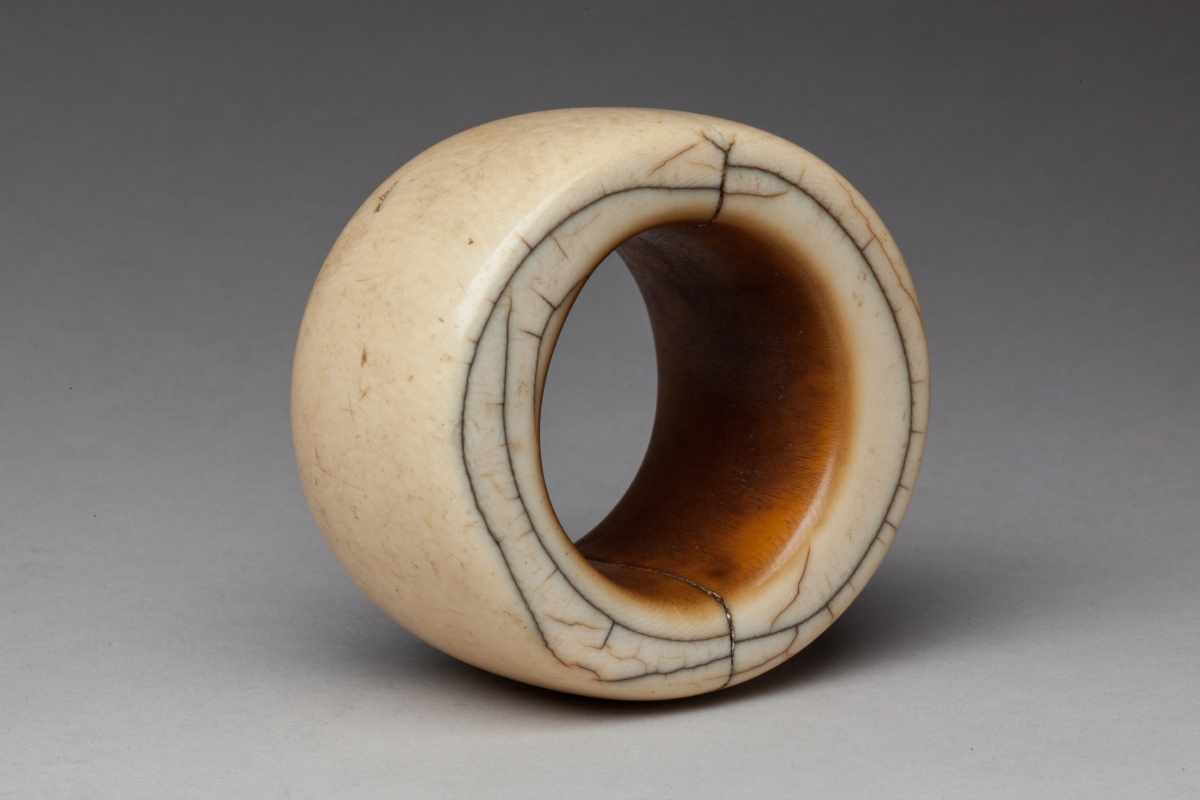 en ivoire de grande ancienneté, patine blonde et brune. Fèle transversale.