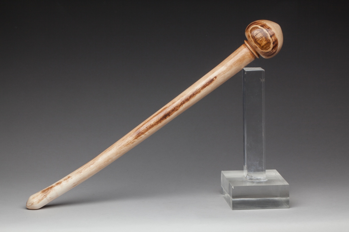 Utilisé comme arme de parade, le "Rungu" ou "Throwing stick" est sculpté par l'ethnie Okiek pour les chefs Massai. Ivoire veiné à patine blonde.