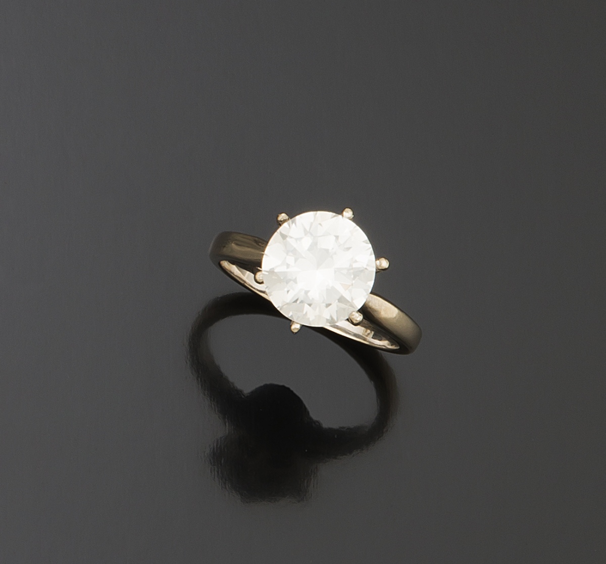 BAGUE en or gris 18K, sertie d'un diamant solitaire de forme ronde et de taille brillant, pesant 3,78 ct.