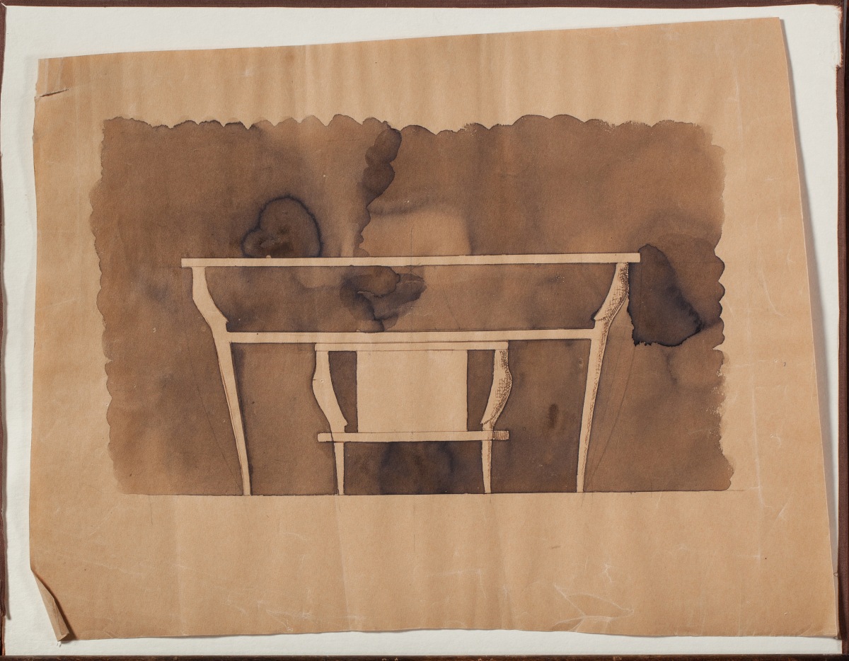 Dessin à l'encre et lavis pour un projet de mobilier en bronze.