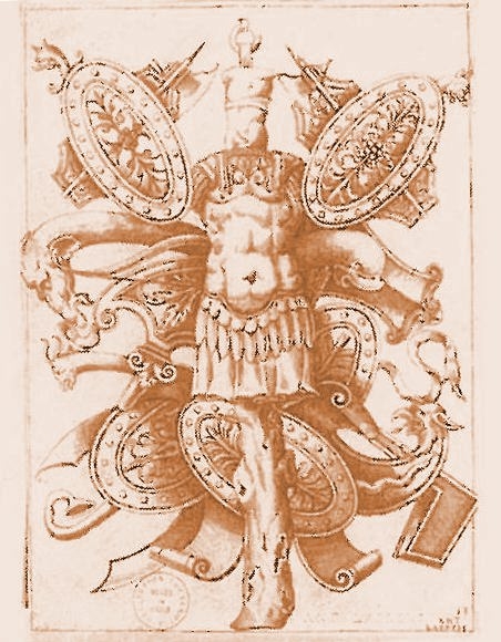 Les montants et supports ordonnent les fantasmagories que les ornemanistes d'Italie du Nord ont transmis à l'Europe et les chimères et harpies que le Rosso a importé à Fontainebleau.