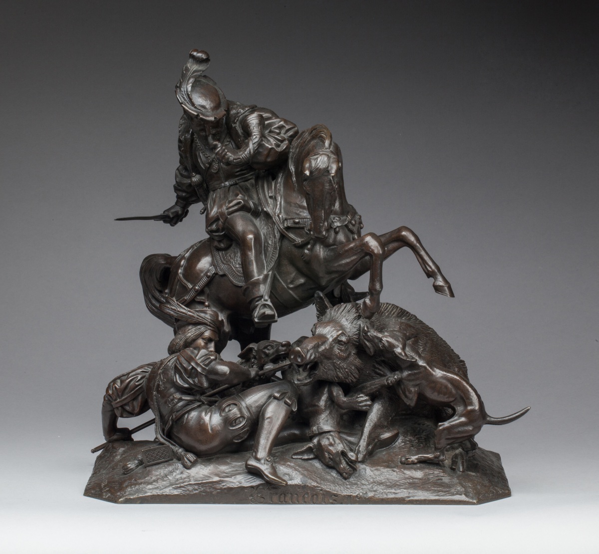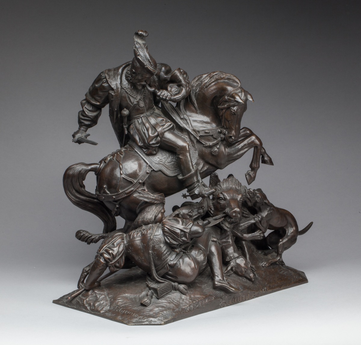 Théodore GECHTER (Paris, 1796 - 1844)François Ier chassant le sanglier.Bronze...