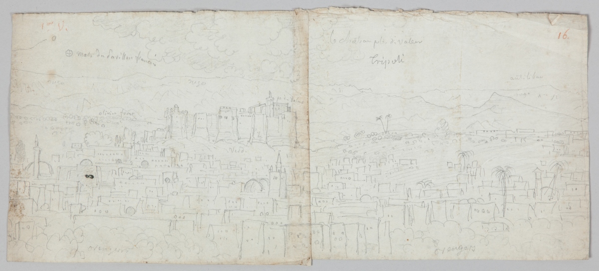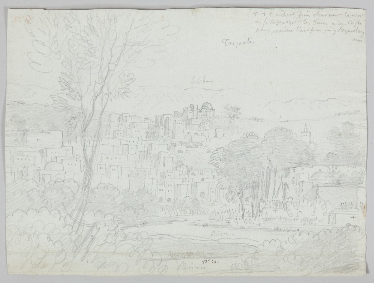 - Feuille d'étude recto-verso: vue de Tripoli ; vue du pont de l'Oronte.